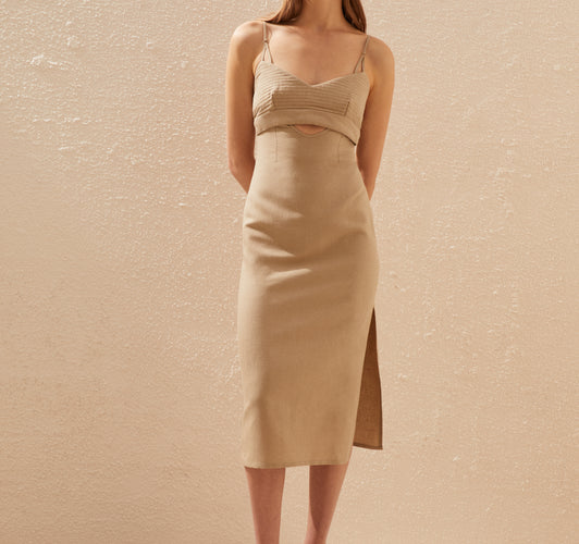 BUSTIER LINEN BLEND DRESS