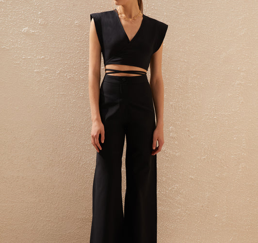 The Terra Top has a fluted mandarin collar with a nice V neck that is nicely closed with fabric covered buttons. Crafted for an oversized fit, this wide sleeve top is ideal for travel or for effortless long days. The slightly balloon sleeves have cuffs with fluting details. Finishes nicely with deep slits on the sides. Perfect to style with everyday pants for an effortless look!