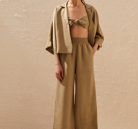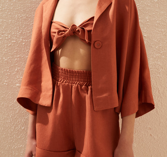 The Evan Shirt, crafted from a blend of linen and viscose, designed for a loose, boxy look. Features an oversize fit, this jacket looking shirt is perfect to style with Alina Pants for a relaxed look and Isla Bustier for hot summer days at the seaside. Nicely finished with fabric covered button on the front.